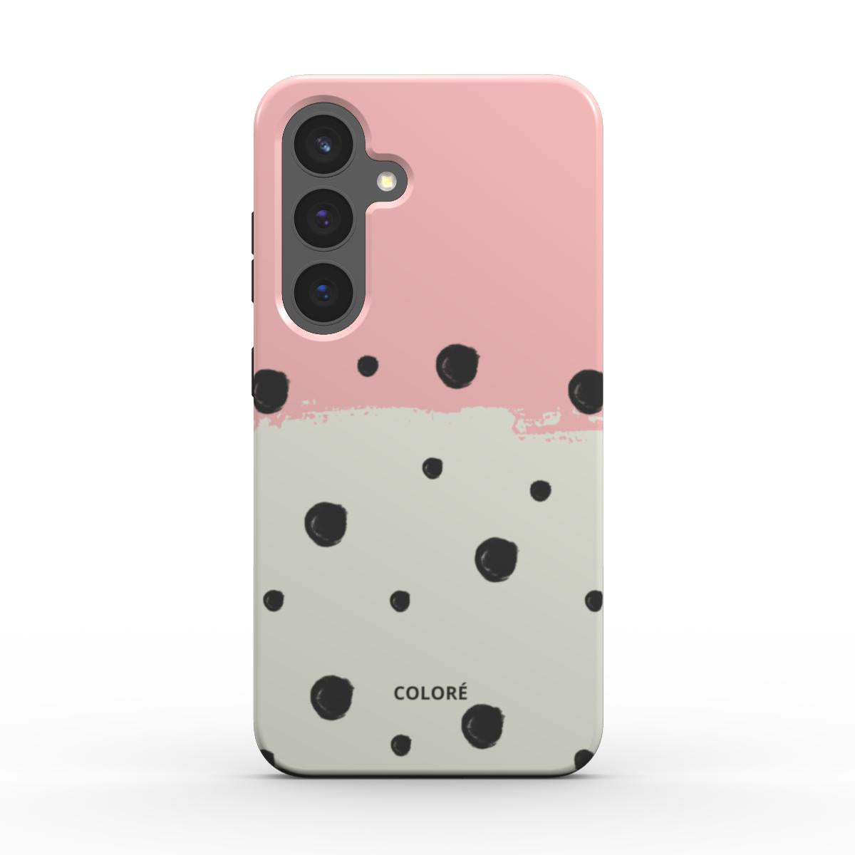 Capa resistente para telemóvel com estampado de bolinhas doces - rosa e preta -